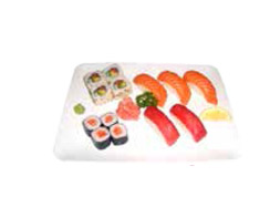 3 sashimi saumon, 3 sashimi thon, 5 r...